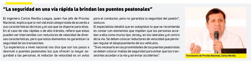 En los próximos 45 días la Gerencia Regional de Infraestructura tendrá un plan de intervención para la instalación de elementos de seguridad permanentes que incluyan separadores de vías y puentes peatonales en los lugares que lo establezca el estudio de demanda.