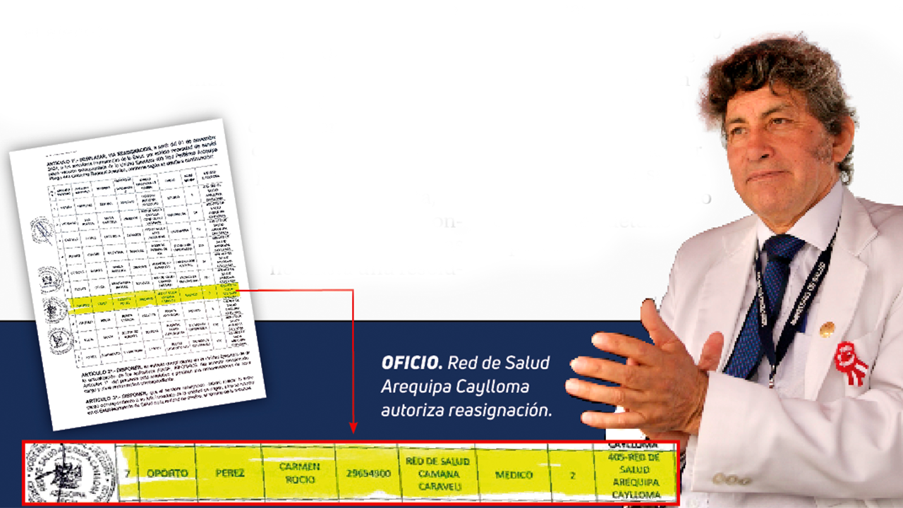 MÁS CUESTIONAMIENTOS. Mediante resolución directorial n.°669-2023-GRA/GRS emitida el último 13 de octubre, el director de la Red de Salud Arequipa Caylloma, Luis Flores Quibarra, autoriza la reasignación de 10 profesionales de la salud. Entre los beneficiados resalta Carmen Rocío Oporto Pérez, quien de trabajar en la alejada Red de Camaná Caravelí logró la comodidad del cambio de su plaza hacia la provincia de Arequipa. Ahora laborará en el centro de salud Ampliación Paucarpata.