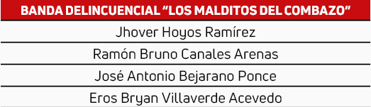El Juzgado de Investigación Preparatoria de Caravelí dictó nueve meses de prisión preventiva para cuatro integrantes de los “Los malditos del combazo”. Uno de los delincuentes es un expolicía, Ramón Canales Arenas y tres cómplices más. (Ver cuadro).