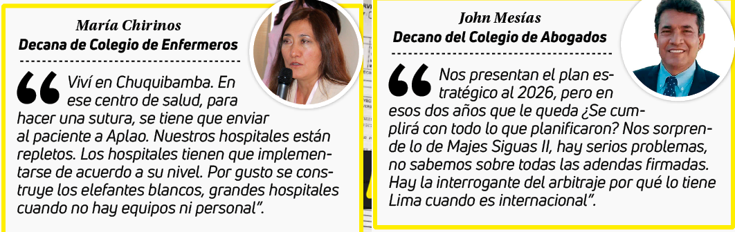 REUNIÓN. En una mesa de trabajo, los decanos de los colegios profesionales de Arequipa explicaron al gobernador regional la crisis que afrontan desde sus sectores. La mayor crítica fueron los proyectos abandonados, la falta de personal, contrataciones, crisis en obras de envergadura, entre otros.