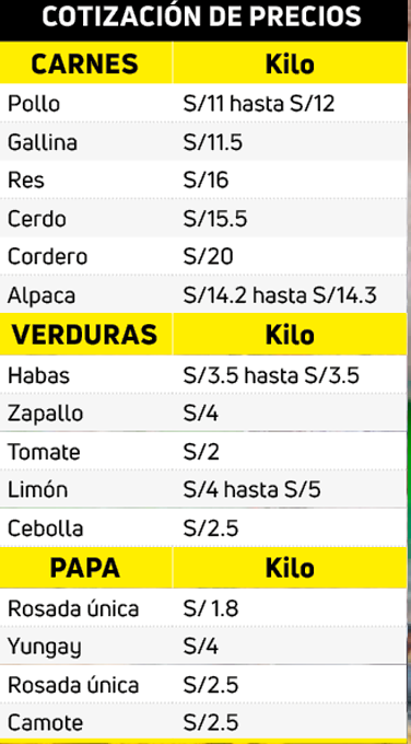 La carne de gallina a S/11.5 y la carne de cordero se incrementó en S/2 cotizando hasta en S/20 ( ver cuadro).
