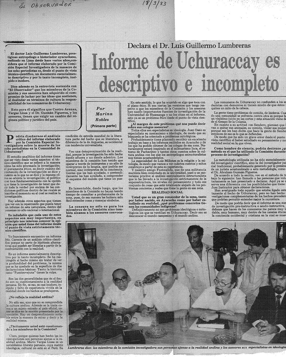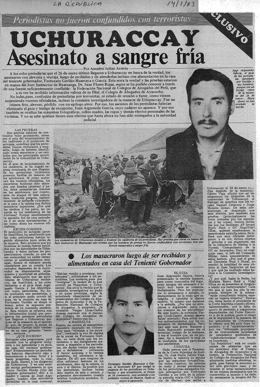 El 26 de enero de 1983, un grupo de periodistas de Lima y Ayacucho viajó a Uchuraccay para informarse más sobre un hecho producido en el poblado vecino de Huaychao. Se trataba de pobladores que habían asesinado a siete senderistas. Los comunicadores para saber la verdad deciden trasladarse al lugar.