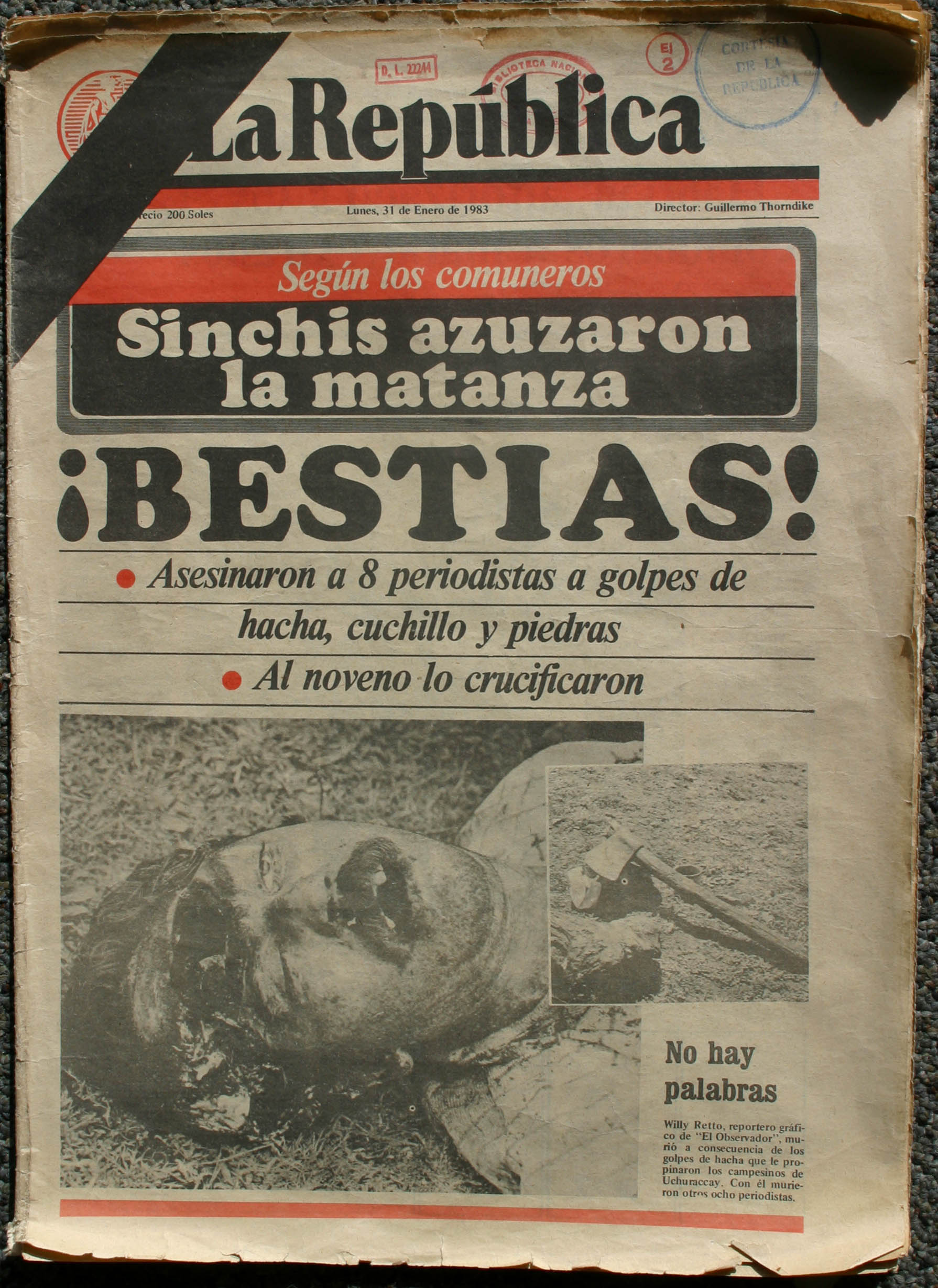 Empezó el interrogatorio, pero las respuestas de los comunicadores no fueron suficientes para los comuneros. Con piedras, hachas, púas y palos inició la masacre. Uno de ellos, Willy Retto, consiguió tomar algunas fotografías antes de morir. El guía y un comunero serían ejecutados posteriormente.