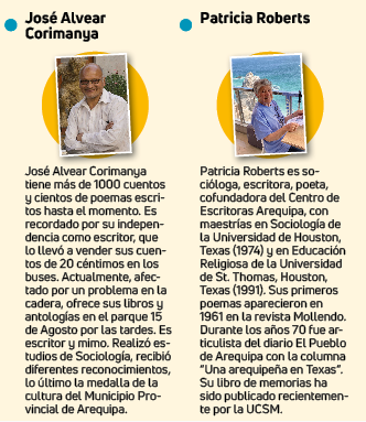 Los escritores Patricia Roberts y José Alvear Corimanya serán reconocidos como socios honorarios en la Red de Escritores Arequipa, en mérito a su aporte a la literatura regional, siendo destacados promotores de la misma desde sus campos y actividades.