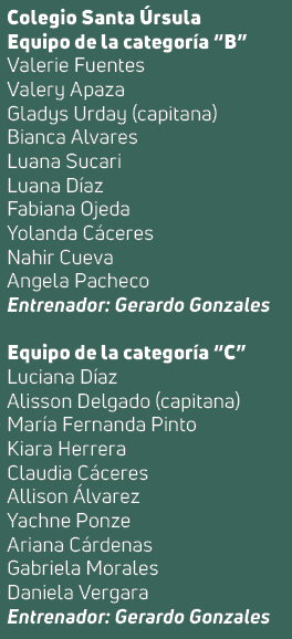 En consecuencia, las ursulinas sacaron su pasaporte a la etapa regional que va del 21 al 25 de agosto, en donde intervendrán los demás clasificados de la UGEL Norte, La Joya, Caylloma, Islay, Castilla, Condesuyos, La Unión, Camaná y Caravelí.