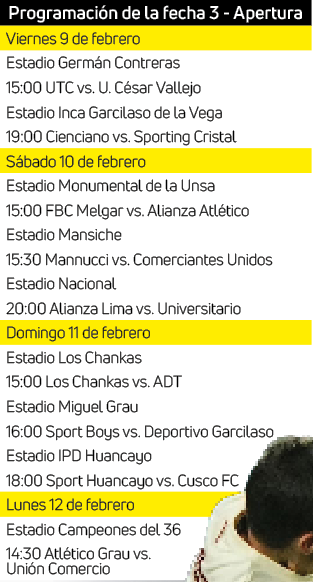 La Liga de Fútbol Profesional publicó en su plataforma social la programación de la tercera fecha del torneo apertura, que tiene como duelo estelar el clásico del fútbol peruano.