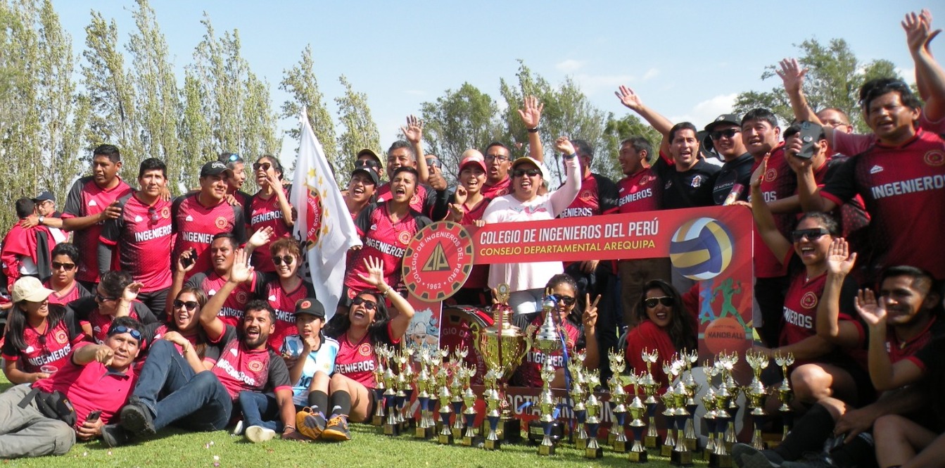En ceremonia especial presidida por el decano del Colegio de Ingenieros del Perú, Consejo Departamental de Arequipa, Víctor Rendón, fue reconocida la delegación de ingenieros deportistas que obtuvieron el octavo título en los tradicionales Juegos Deportivos de la “Copa Conrede 2022”, evento concluido en las instalaciones del Club del Abogado y organizado por el Consejo Regional de Decanos de los Colegios Profesionales de Arequipa.