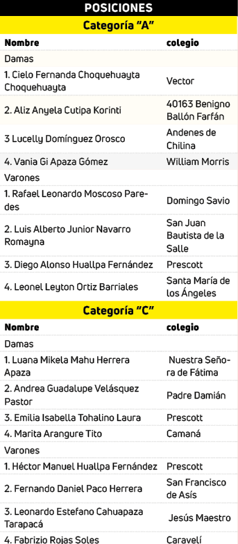 Un total de 209 escolares tomaron parte de la competencia en la categoría “A” y 199 en la “C”.