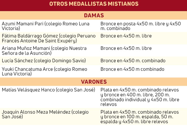 Aniet Paredes (colegio Mayor Mendel) recabó dos medallas de oro (50 y 100 metros) en el estilo espalda. También, agarró bronce en posta 4x50 m. combinado y 4x50 m. libre.