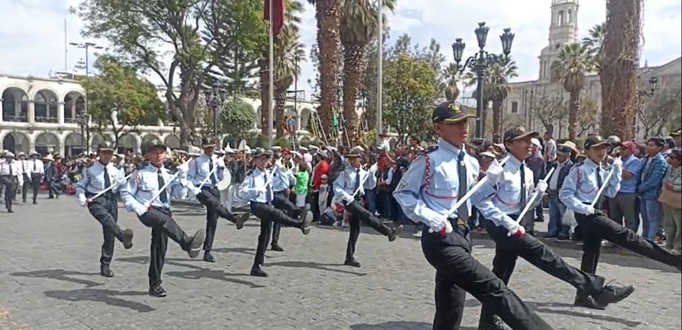 Es por ello que este domingo 1 de octubre del 2023, docentes, alumnos, personal administrativo, miembros de instituciones públicas y privadas, así como de periodistas de Arequipa desfilaron por el estrado oficialubicado frente a Portal de la Municipalidad Provincial de Arequipa en la plaza de Armas de la Ciudad Blanca, luego de haber realizado el izamiento del máximo símbolo patria: la bandera del Perú.