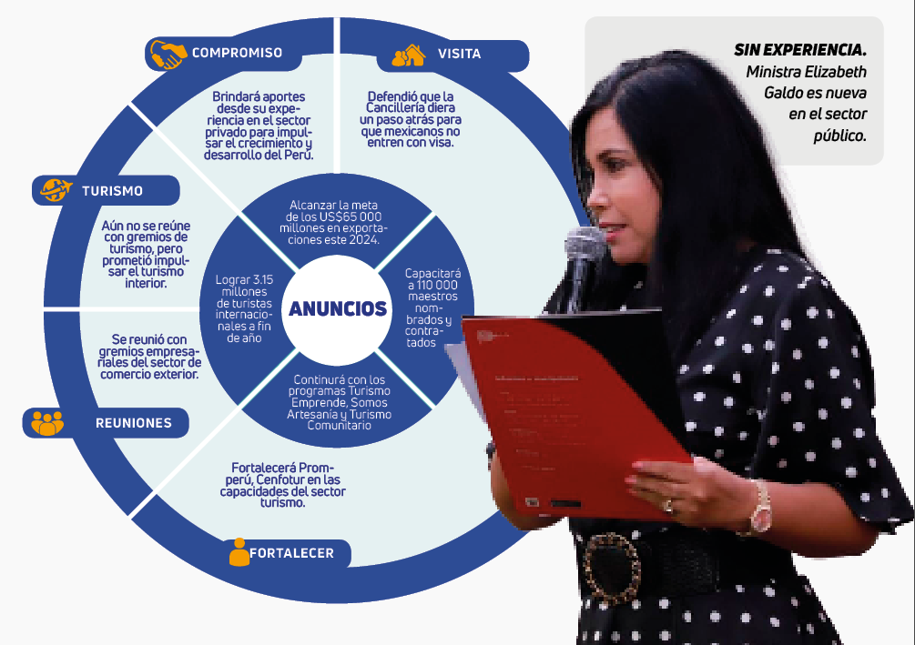 La presidenta Dina Boluarte cambió tres veces al titular del Ministerio de Comercio Exterior y Turismo, siendo la actual Elizabeth Galdo, quien lleva 17 días en el cargo. Entre sus promesas está llegar a los 3.15 millones de turistas, sin embargo dirigentes no confían que llegue a su meta por su falta de experiencia.