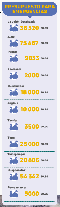 Alrededor de 15 mil pobladores de la provincia de La Unión están en peligro ante el ingreso inminente de un huaico o el desborde de ríos y esto se agrava, porque las autoridades destinaron tan solo S/36 320 para atender emergencias por desastres naturales.