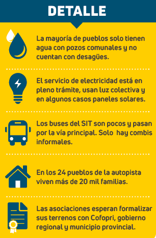 En el Cono Norte decenas de asociaciones de vivienda recién están en los inicios de esta odisea. Para citar un ejemplo podemos hablar de la autopista Arequipa-La Joya donde hay más de 20 pueblos que están en pleno proceso de formalización.