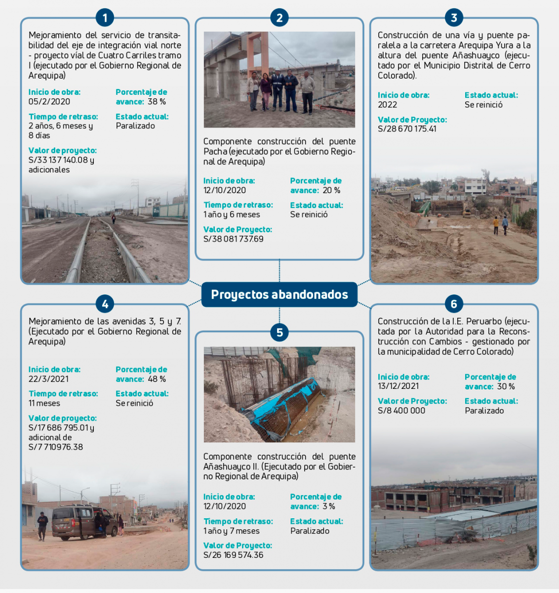 En esta asociación también se contempló la construcción de dos puentes: Paccha y Añasuayco II, el primero hace poco se ha reiniciado y el segundo está paralizado.