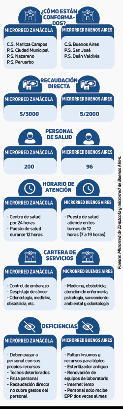 El común denominador de estas microrredes es la deficiencia de infraestructura y falta de personal, entre las postas comparten personal para ayudarse porque saben que en la red de salud los ignoran.