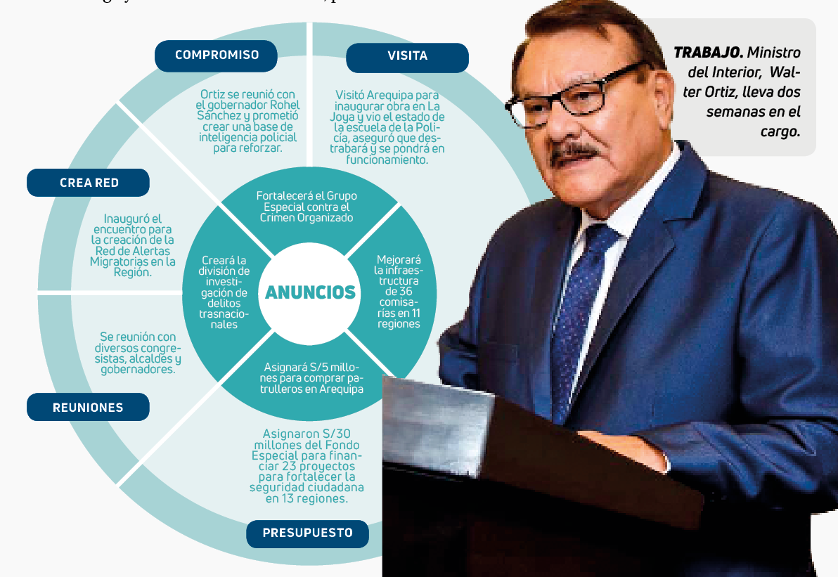 El Ministerio del Interior (Mininter) tuvo cinco titulares en tan solo 16 meses y ninguno de ellos redujo o tuvo un plan para la lucha contra la criminalidad. Ahora la cartera es dirigida por el general PNP (r) Walter Ortiz Acosta, quien a diferencia de su antecesor Víctor Torres, sí estuvo trabajando en el Perú como jefe de la Dirección General contra el Crimen Organizado; en caso de Torres, lo trajeron desde Estados Unidos.