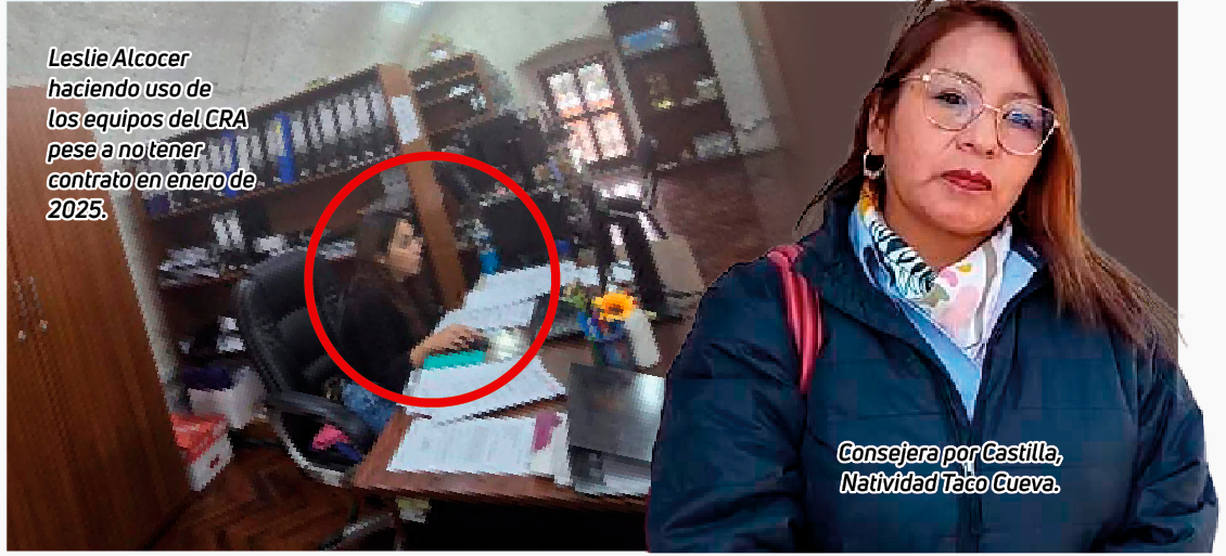 Su última locación de servicio fue emitida al 18 de octubre del 2024, la misma que debía culminar entre noviembre y diciembre, pero curiosamente Leslie Alcocer continúa asistiendo a su centro de trabajo con total normalidad pese a no registrar un nuevo requerimiento de servicios, haciendo uso de los bienes estatales sin presentar vínculo contractual. Incluso fue reconocida el último miércoles 29 de enero por el mismo presidente del CRA, Osías Ortiz Ibáñez, por su “destacada labor”.