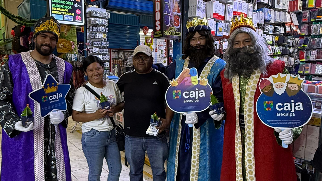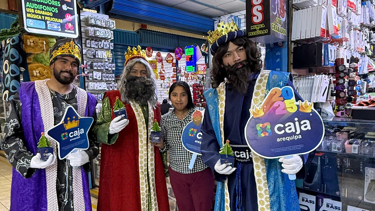 Este 6 de enero, Caja Arequipa cerró con broche de oro las festividades navideñas con la tradicional Bajada de Reyes. Los Tres Reyes Magos: Melchor, Gaspar y Baltazar, llegaron montados a caballo para visitar a los niños de los mercados de la ciudad, incluyendo el Centro Comercial Gratersa.