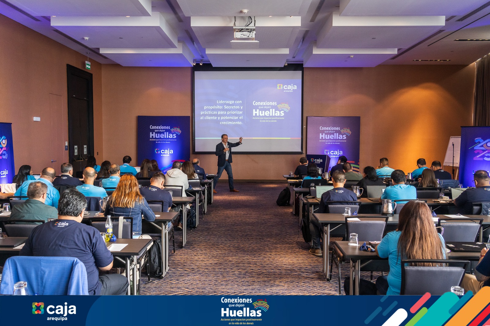 Con el objetivo de asegurar la calidad del servicio y el cumplimiento de metas para el nuevo año, Caja Arequipa llevó a cabo el primer taller titulado "Conexiones que dejan Huellas, ¡Acciones que impactan positivamente la vida de los demás!", los días 03 y 04 de enero en la ciudad de Lima. El evento reunió a gerentes de todas las regiones del país para alinear esfuerzos hacia los objetivos estratégicos y el cumplimiento de metas en 2025.
