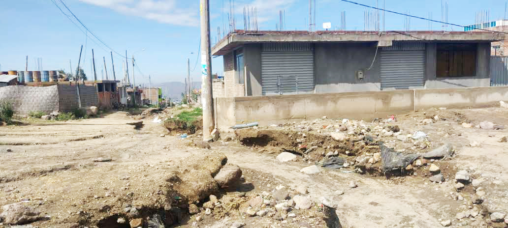 Ingresó de huaico dejó calles con profundas zanjas en asociación Embajado de Japón.