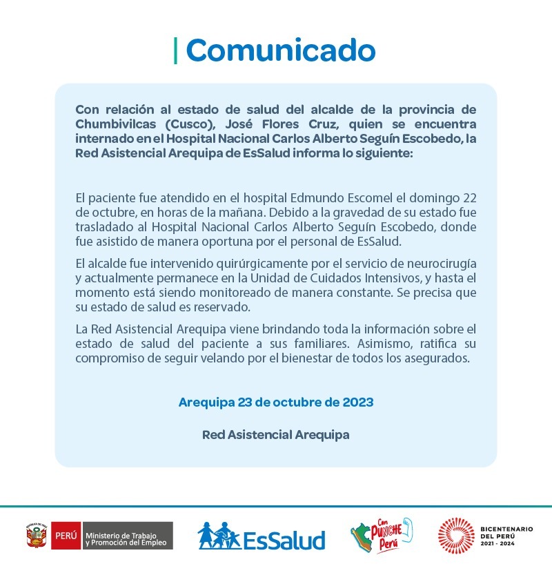 Comunicado de Red Asistencia de Arequipa Essalud