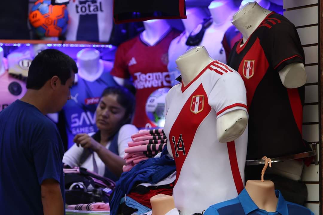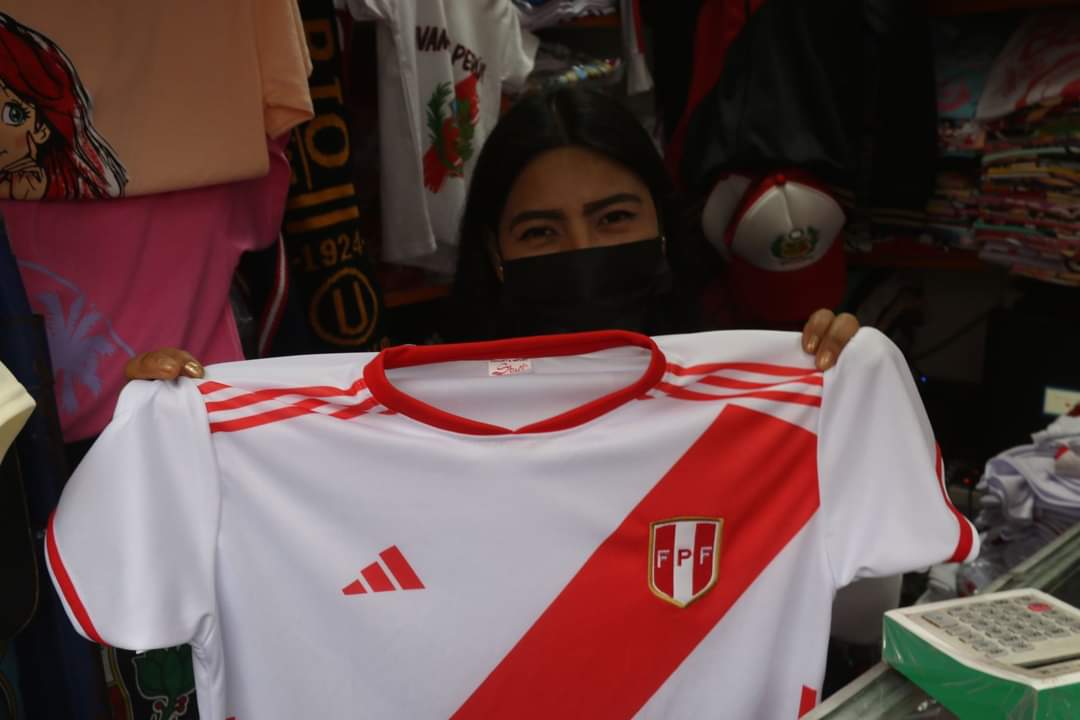 Hinchas peruanos compran camisetas en el emporio Comercial Gamarra para alentar a la selección peruana