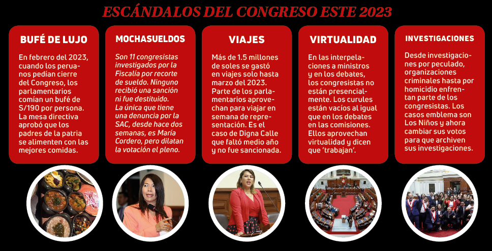 Los bonos no son los únicos escándalos que tienen los ‘padres de la patria’. Recordemos que a inicio de año y cuando los peruanos fallecían en medio de las protestas contra el Parlamento y Dina Boluarte, ellos disfrutaban como reyes.