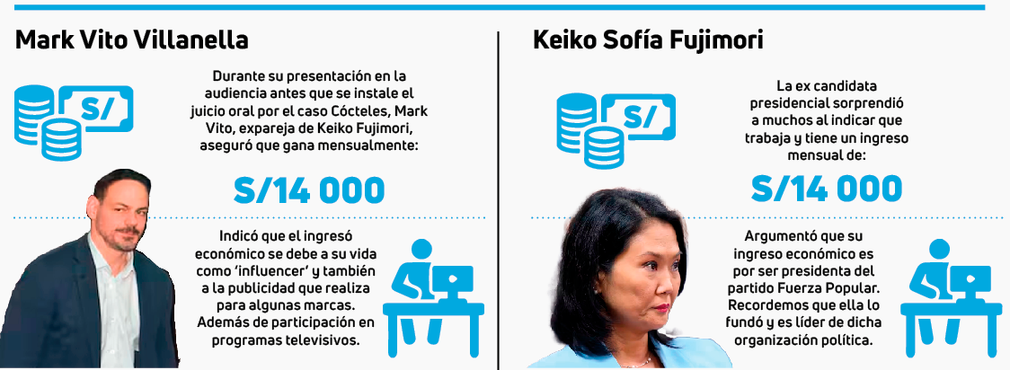 Durante la audiencia los imputados se presentaron y dieron información laboral y su ingreso mensual (ver cuadros) que sorprendió a muchos. Como no asistieron todos, los jueces declararon como reos contumaces a los faltantes: al exjefe del Área de Verificación y Control de la ONPE, Luis Barboza; al financista Juan Luna Frisancho y al dirigente fujimorista Ítalo Pachas Quiñones.